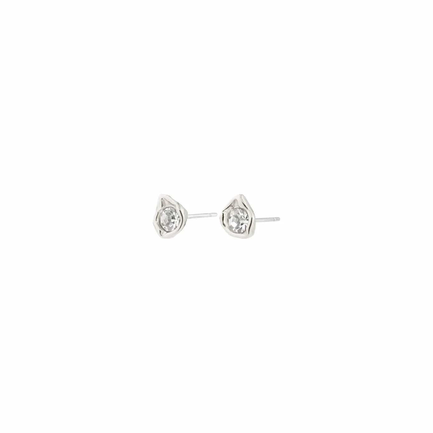 Subtle shine, natural beauty! The silver-plated KOTA studs by Pilgrim are a key item in your jewellery collection. Designed with a raw nature-inspired shaped setting around a sparkling Preciosa crystal, they create a stylish yet impactful look. Perfect for stacked ear curation or as a subtle statement for a touch of glam in everyday life. Style them solo for a clean girl vibe or combine with other studs for a trendy, personalized mix ‘n’ match look. Made from 94% recycled materials with care for the environment.