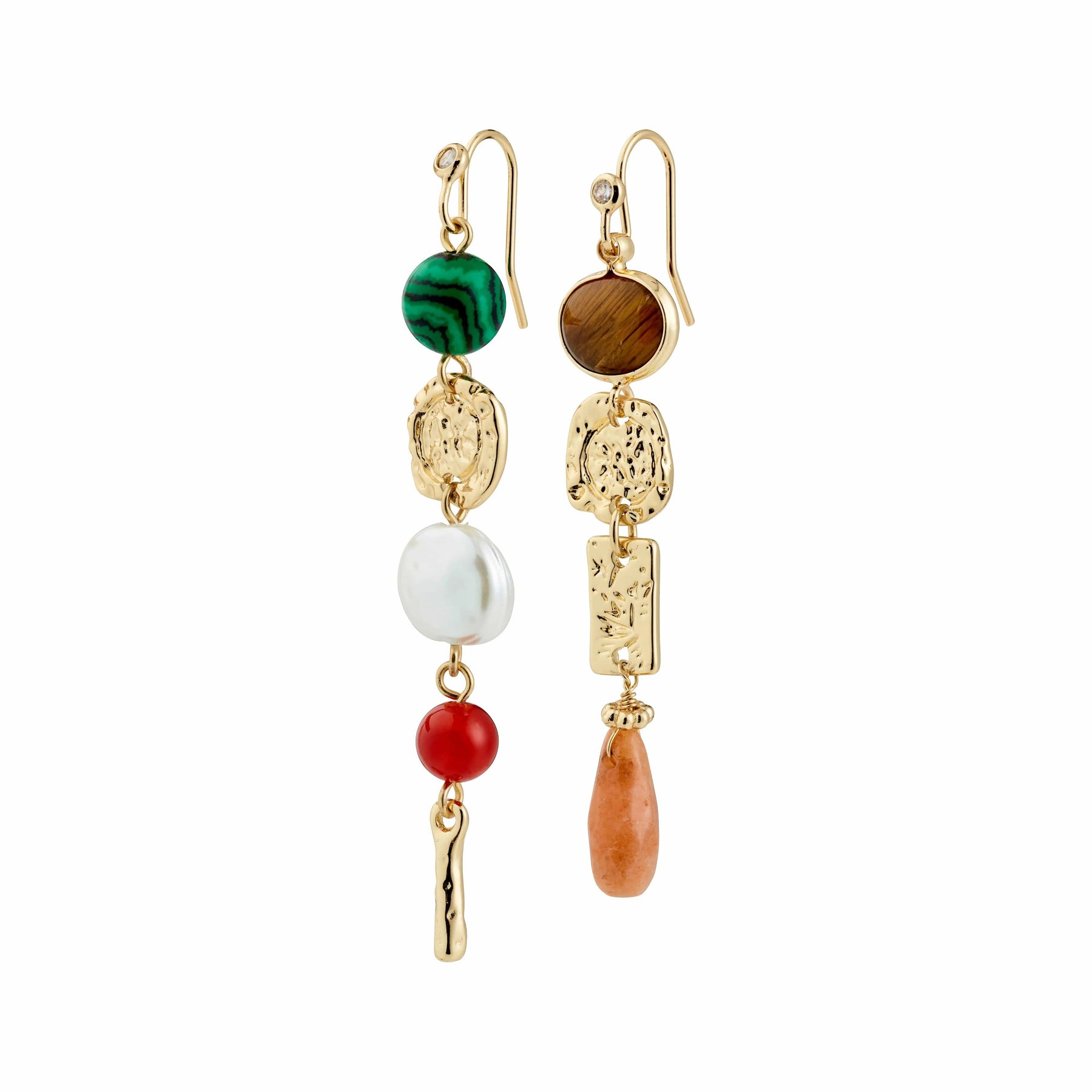 SENSE the colours, embrace the energy! The silver-plated SENSE earrings from Pilgrim are an artistic mix of textures, shapes, and colours that give your look a unique and free-spirited touch. The design combines raw, rustic pendants with colourful semi-precious stones, glass beads, and mother-of-pearl details for a boho luxe vibe with plenty of personality. The asymmetrical look creates a playful and creative expression that allows you to style them in your own way. Perfect for a bohemian-inspired outfit with a flowy dress and chunky sandals for a relaxed, artistic vibe.