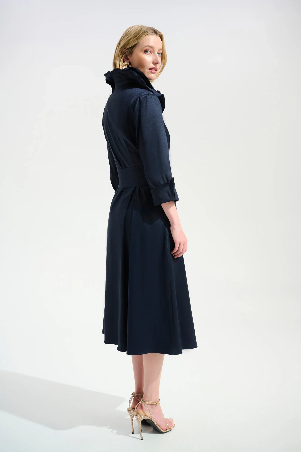 Sculpted yet fluid, this stretch taffeta dress features a wired double lapel collar, waist sash, and pleated skirt. The Rhinestones zipper pull adds a refined touch to its confident silhouette. Part of the Signature collection.