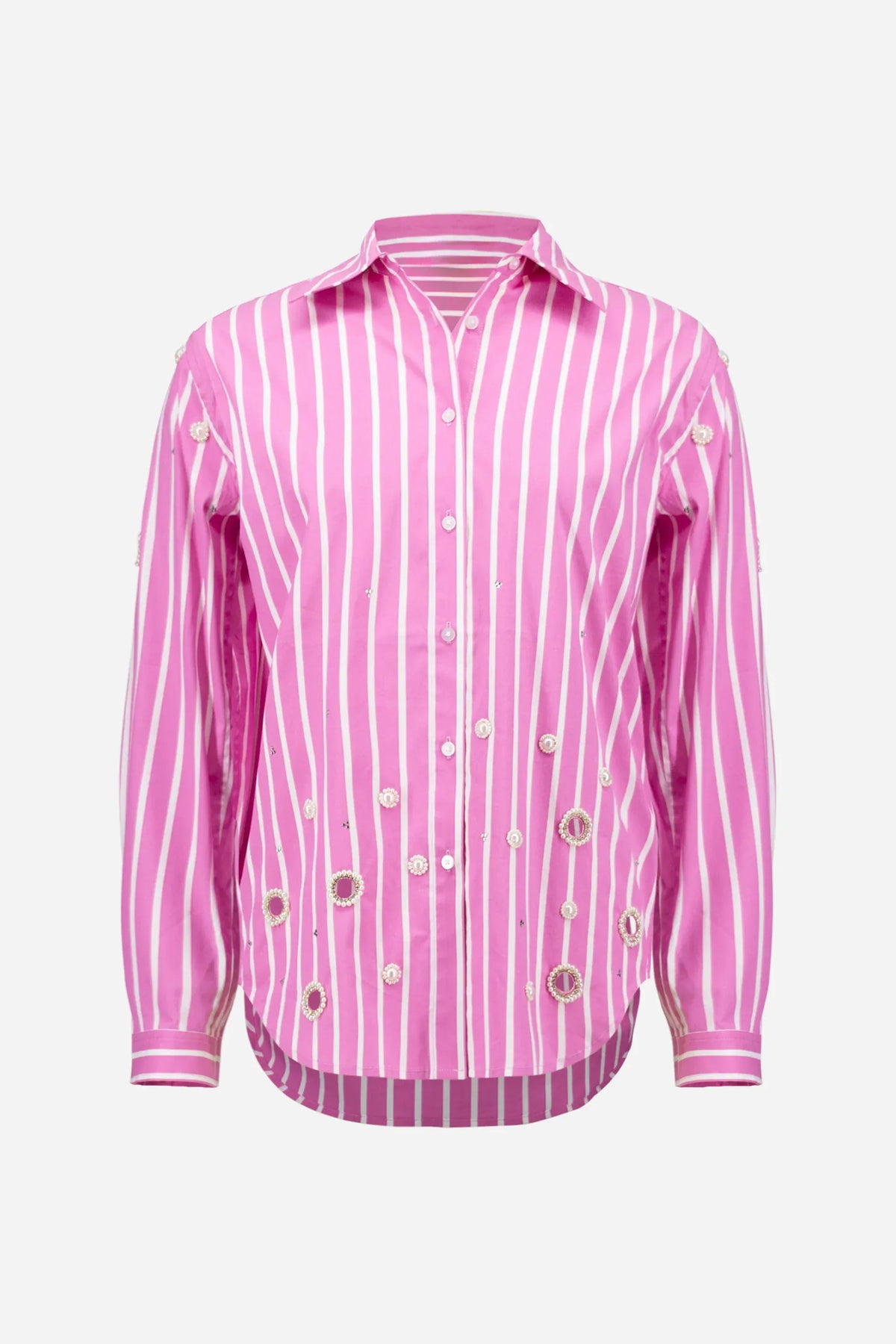 • Assorted heat-transfer stones at hem and sleeves