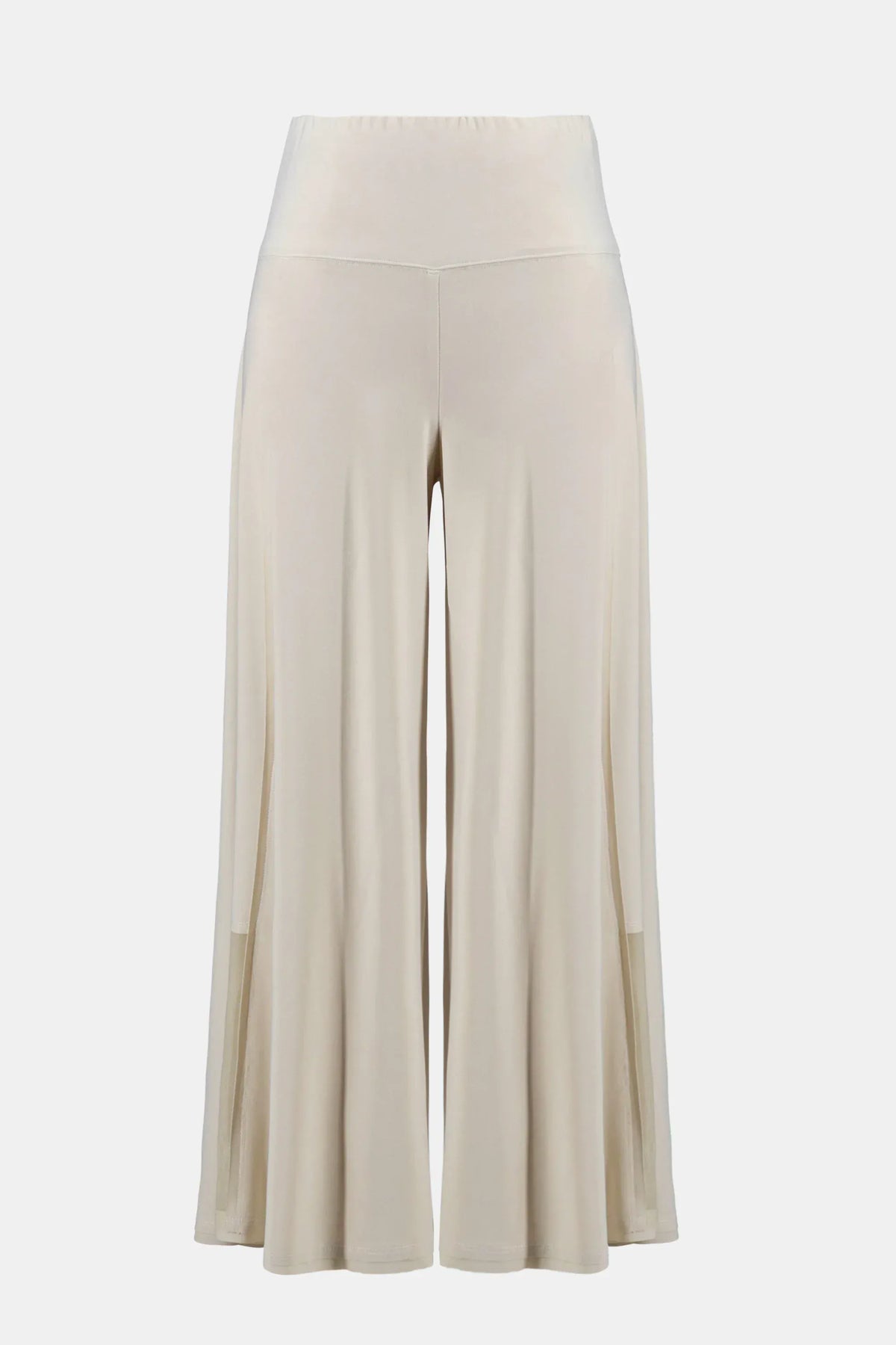 Comfort meets edge in these wide leg pull-on pants, crafted from silky knit and finished with mesh inserts at the hem for a modern contrast. The elastic waistband keeps things effortless.