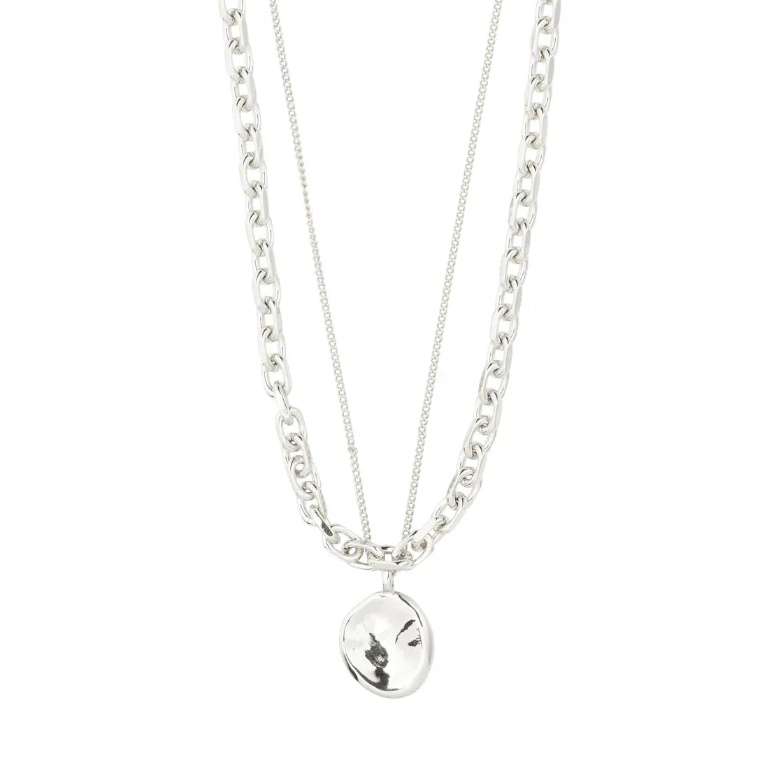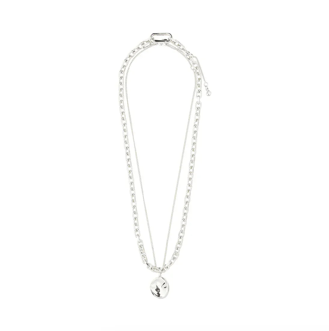 With the gold-plated or silver-plated SPARKLE necklaces from Pilgrim, you'll find your new fave accessories. A shiny cable chain with a decorative snap lock and a sleek coin chain with a reflective pendant that resembles a small fingerprint give your look a personal touch and create the perfect combo of street-ready vibes and dreamy elegance. Style solo for a minimalist look, or mix in a layered combo that pairs perfectly with this season's preppy pieces. The chains measure 40/45 cm, and the coin chain has an extra 9 cm extension for added flexibility. Made from 99% recycled materials with care for the planet.
