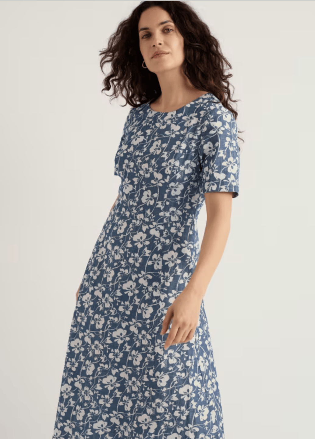 Effortless elegance meets everyday practicality in this printed midi dress from Seasalt Cornwall. Crafted from organic cotton chambray, it features a flattering waisted silhouette that transitions seamlessly from office to weekend. The round neckline and concealed zip fastening create a polished look, while hidden side pockets add functional style. Perfect for work, casual outings, or summer occasions. Machine wash at 30°C for easy care.