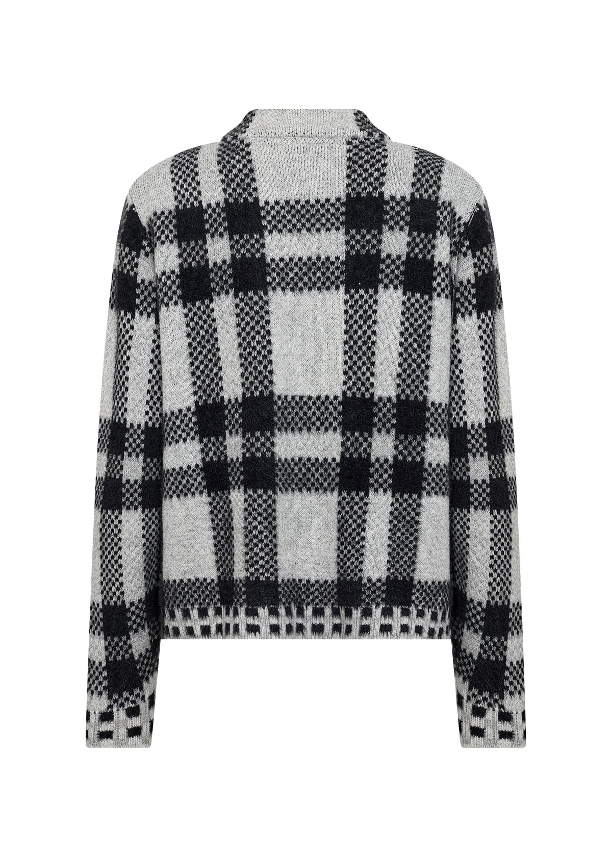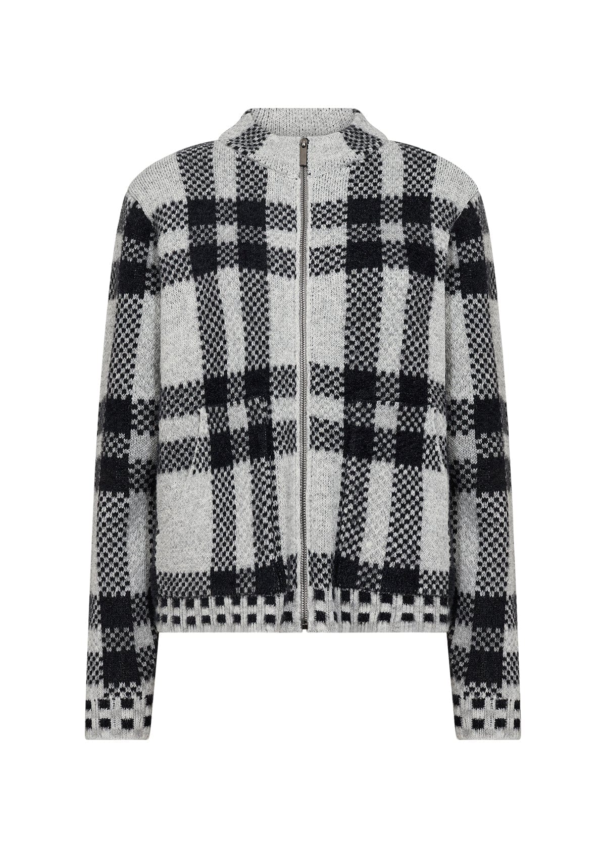 Experience the perfect blend of comfort and style with the Soya Conpect Cardigan. Made from an equal mix of polyester and nylon, this cardigan features a high collar and convenient zip fastening for added warmth and ease. Its chic checkered pattern and hip-length cut make it versatile enough to pair with jeans for a casual day out or layer over a dress for refined warmth and elegance. Elevate your wardrobe with this timeless piece designed to keep you cozy and fashionable in any setting.