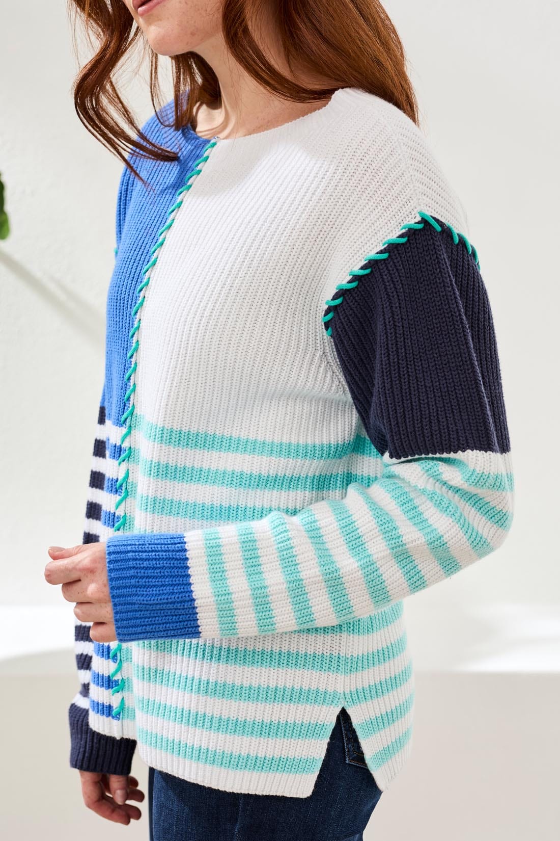 Refresh your look with this sweater featuring a playful multi-stripe pattern. The cozy acrylic blend yarn ensures warmth, while long sleeves offer full coverage. A sweeping boat neckline adds a touch of classic elegance to the design.